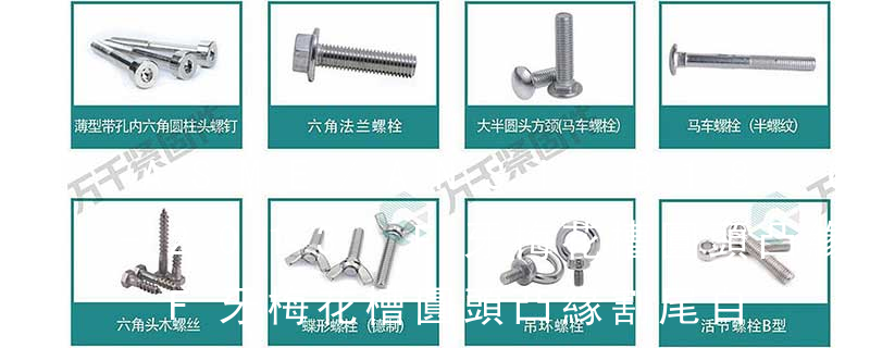 槽型:1.一字2.內三角3.內角四方4.十字5.米字6.花形7.梅花形8.花形一字9.特形10.內六角英文名稱十字槽盤頭組合機絲牙螺釘 采用的是GB818 Cross recessed pan head Combination screws十字槽盤頭機絲牙螺釘 采用的是GB818 Cross