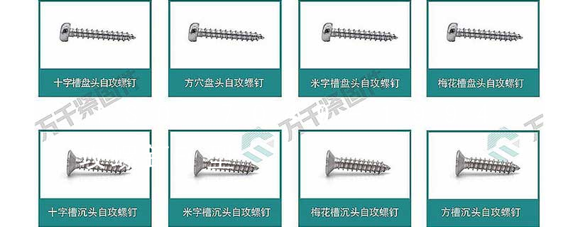 扳擰方式五花八門。外扳擰:六角、六角法蘭面、六角凸緣、六角花形等;內扳擰:一字槽、十字槽H型(Phillips)、十字槽Z型(Pozidriv)、十字槽F型(Frearson)、四方槽(Scrulox)、復合槽、內花鍵、內六角花形(梅花槽 十字槽盤頭自攻螺釘國標是1985。不需要配合螺母使用的自攻螺釘 十字槽盤頭自攻螺釘是指不需要配合螺母使用的自攻螺釘,牙螺紋是自攻型的,尾部尖端的。三角牙自擠成型螺釘當被擰入塑性金屬材料上的孔時,靠擠壓作用在孔內形成